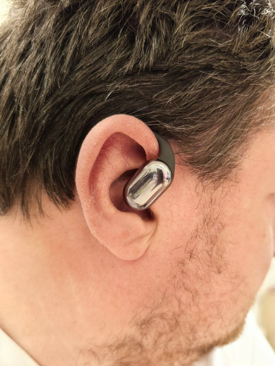 Концепция тут примерно такая же: не занимать уши пользователя какими-либо затычками, а закрепить излучатели снаружи ушной раковины, а не в слуховом канале. Это даёт сразу несколько преимуществ.